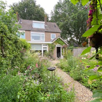 Onze tuin is meegegroeid van speeltuin voor de kids naar een tuin voor de vogels, vlinders, kikkers, bijen etc, met zo veel mogelijk inheemse planten.